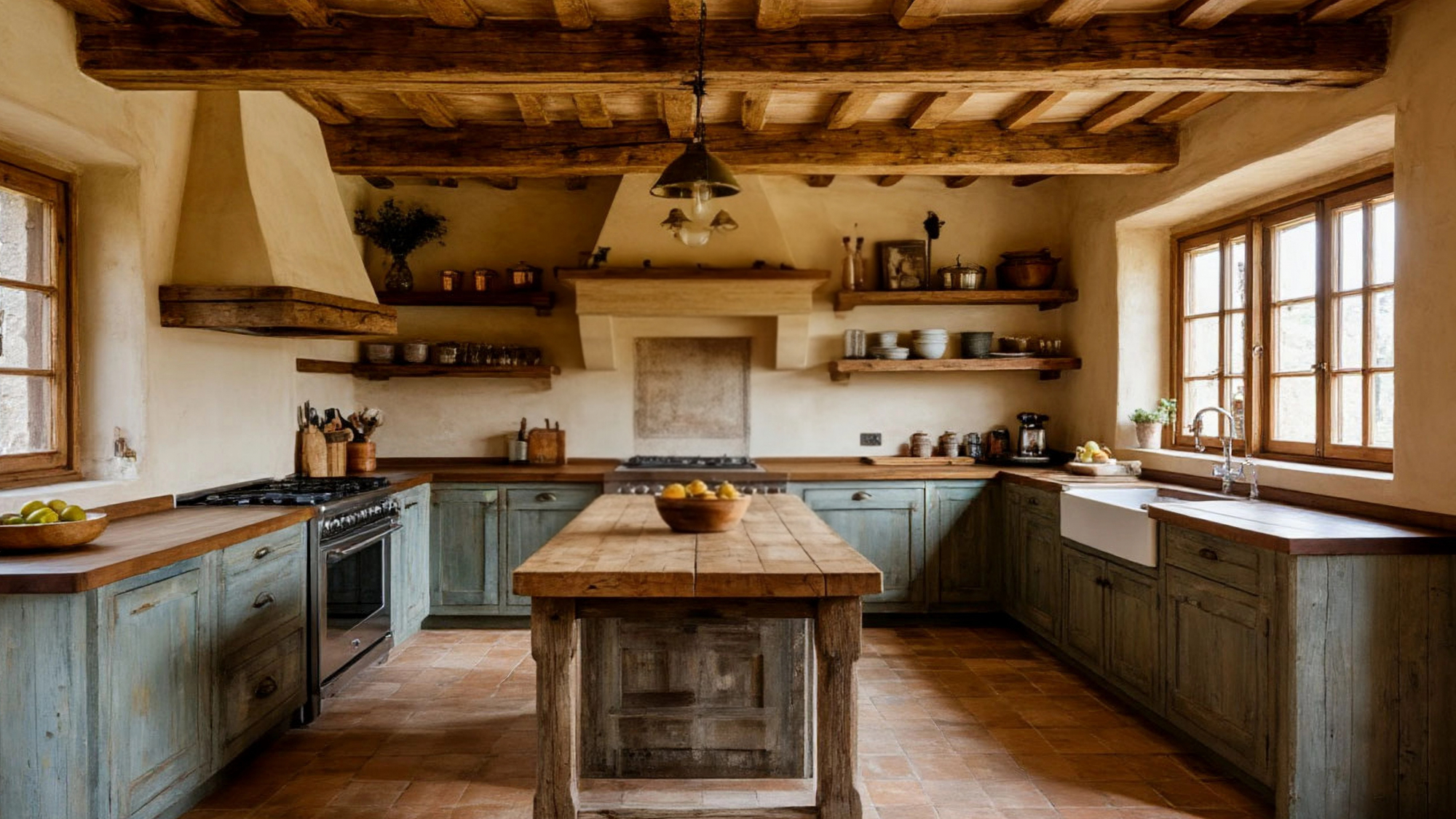 Особенность кухни "Эльзас" в том, что она выполнена без традиционных навесных шкафов. Вместо них пространство раскрывается полностью, оставляя ощущение лёгкости и свободы. Ничто не перегружает интерьер: всё дышит воздухом, светом и гармонией. Здесь каждый предмет на виду, каждый элемент подчеркивает аутентичность и создаёт настроение настоящего деревенского дома. Отсутствие шкафов не уменьшает функциональность, напротив — кухня выглядит просторнее, а необходимые вещи удобно размещаются на открытых полках и консольных поверхностях. Такой подход формирует живой интерьер, в котором сочетаются практичность и красота.